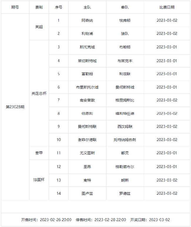 附件4.足球彩票赢输游戏(14场和任选9场)第23028期